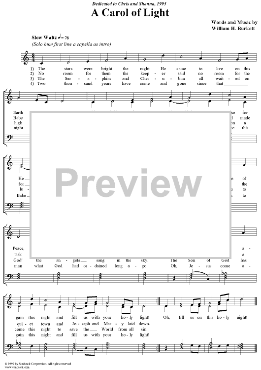 "A Carol of Light" Sheet Music by William H. Burkett