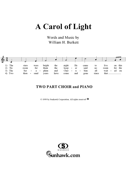 Digital Sheet Music for A Carol of Light by William H. Burkett scored for Two-part Chorus/Piano; id:113155