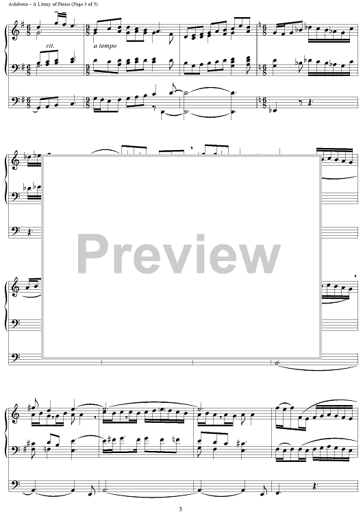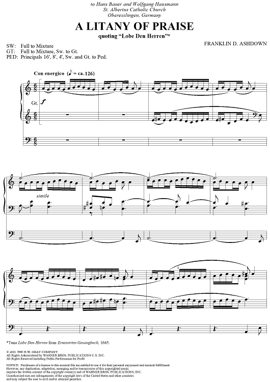 Digital Sheet Music for A Litany of Praise by Unknown Writer, Franklin D. Ashdown scored for Organ Solo; id:288514
