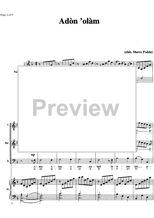 Digital Sheet Music for Adòn 'olàm by , Marco Podda, Traditional scored for Male Chorus/Piano; id:329105