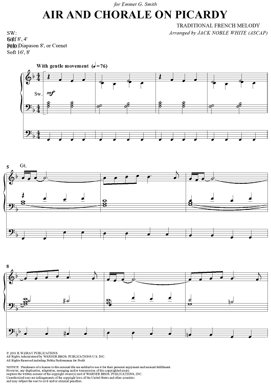 Digital Sheet Music for Air and Chorale on Picardy by Jack Noble White, Traditional scored for Organ Solo; id:292867