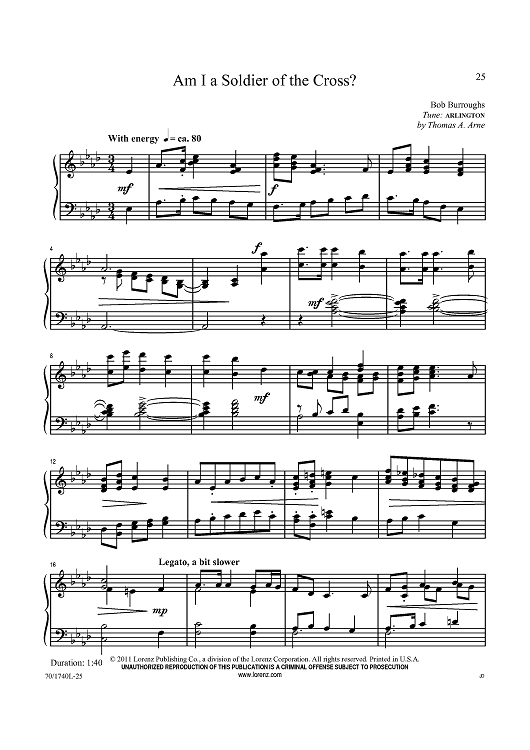 Digital Sheet Music for Am I a Soldier of the Cross? by Thomas Arne, Bob Burroughs scored for Piano Solo; id:433984
