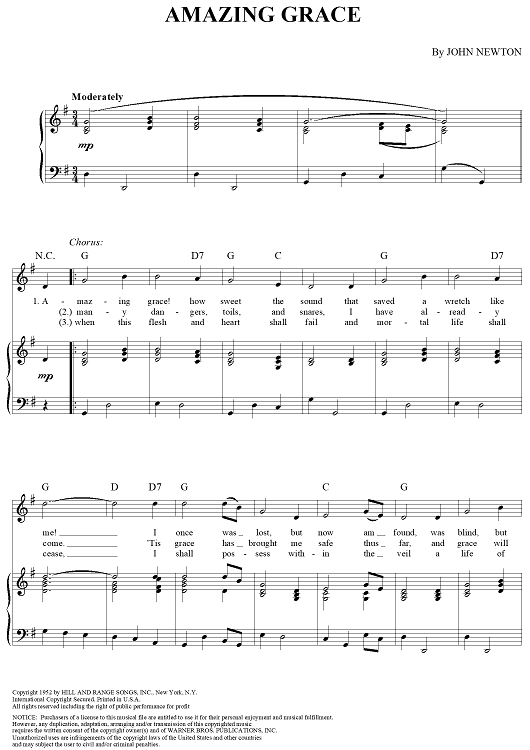 Digital Sheet Music for Amazing Grace by John Newton, Mahalia Jackson scored for Piano/Vocal/Chords; id:356043