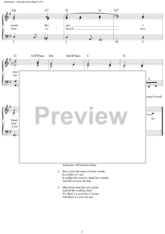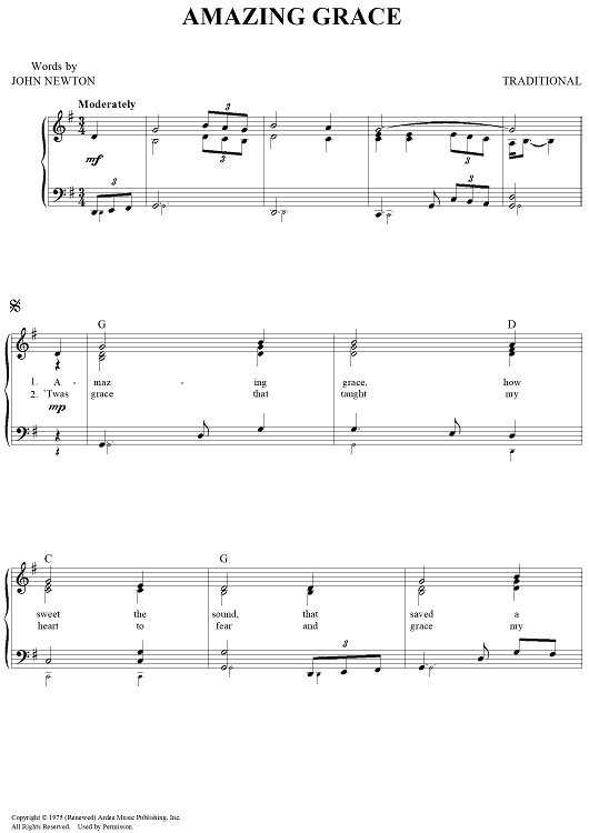 Digital Sheet Music for Amazing Grace by John Newton, Traditional scored for Easy Piano/Vocal/Chords; id:432902
