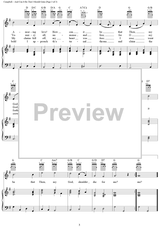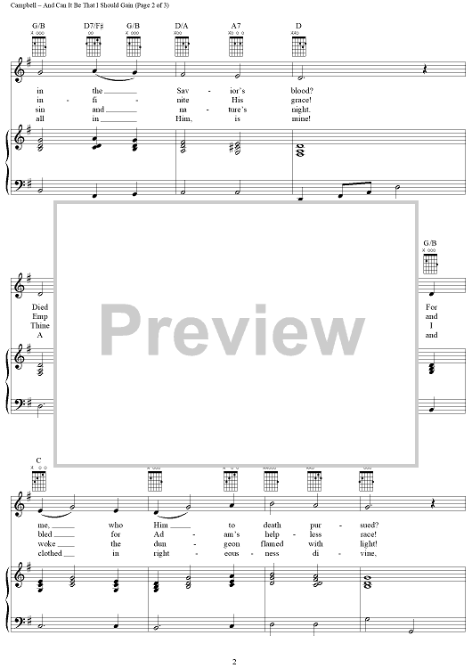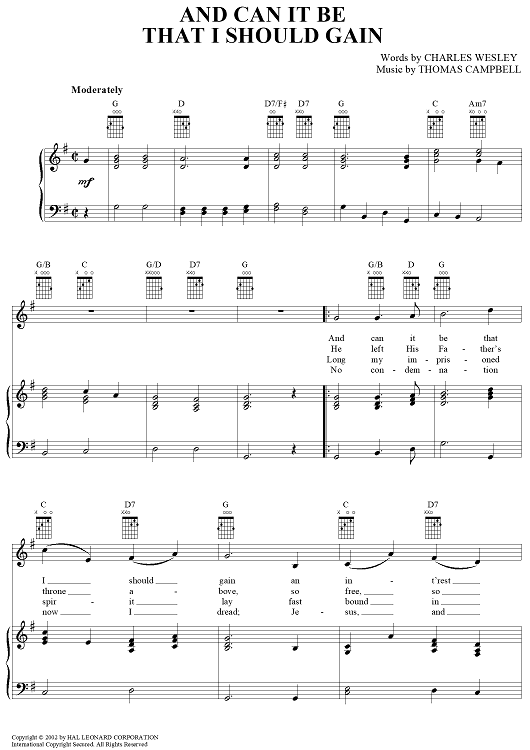 Digital Sheet Music for And Can It Be That I Should Gain by Charles Wesley, Thomas Campbell scored for Piano/Vocal/Chords; id:367619