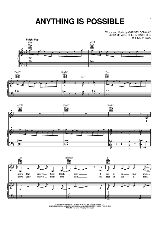 Digital Sheet Music for Anything Is Possible by Chrissy Conway, Alisa Girard, Joe Priolo, Kristin Swinford scored for Piano/Vocal/Chords; id:367555