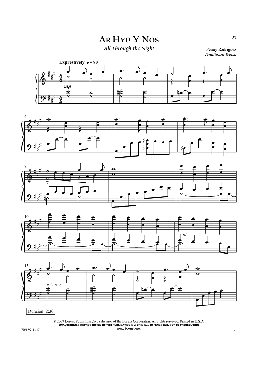 Digital Sheet Music for Ar Hyd Y Nos (All Through the Night) by Traditional Welsh Melody, Penny Rodriguez scored for Piano Solo; id:434779