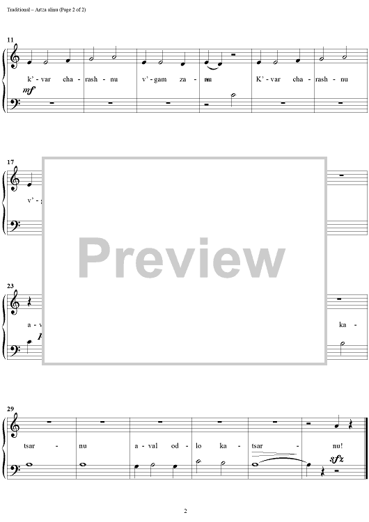 "Artza Alinu" Sheet Music by Traditional