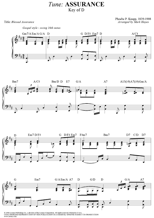 Digital Sheet Music for Assurance by , Mark Hayes, Phoebe Palmer Knapp scored for Piano Solo; id:436634