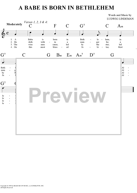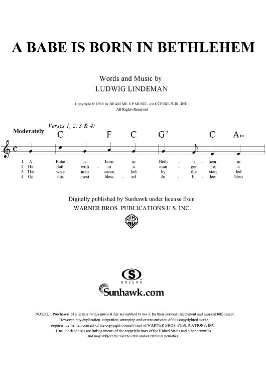 Digital Sheet Music for Babe Is Born In Bethlehem, A by Ludwig Lindeman scored for Lead Sheet; id:250671