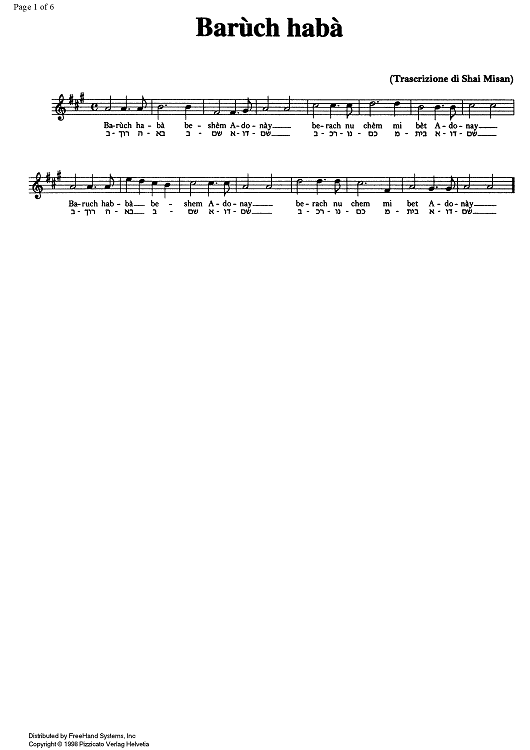 Digital Sheet Music for Barùch habà by , Marco Podda, Traditional scored for Male Chorus/Piano; id:329109