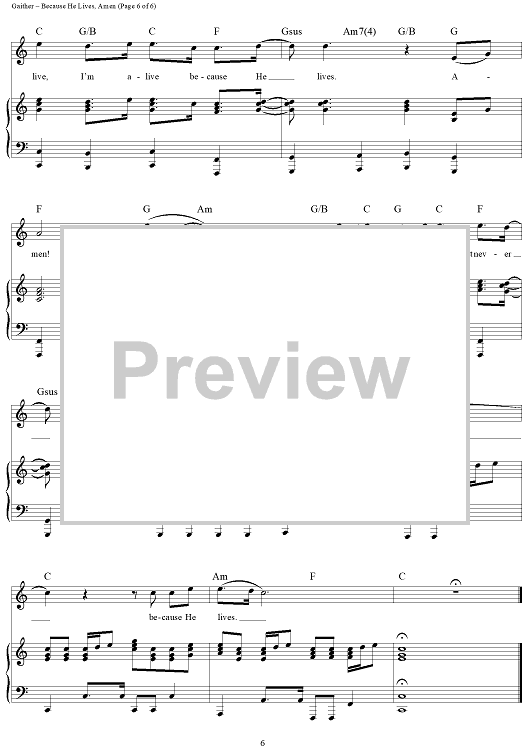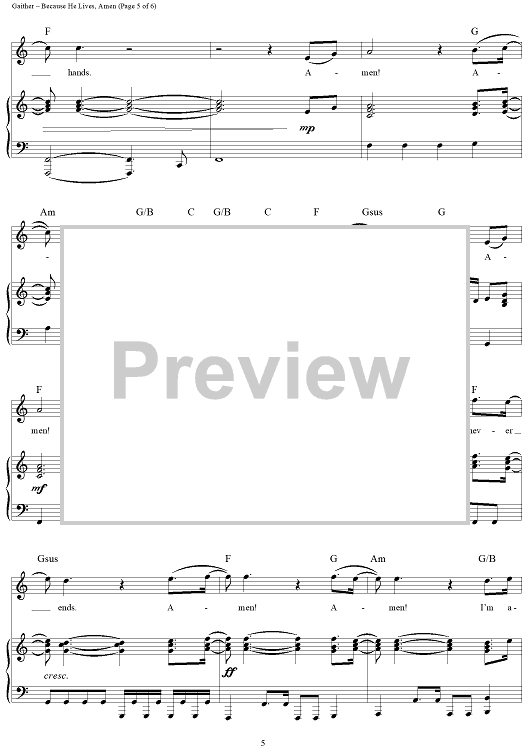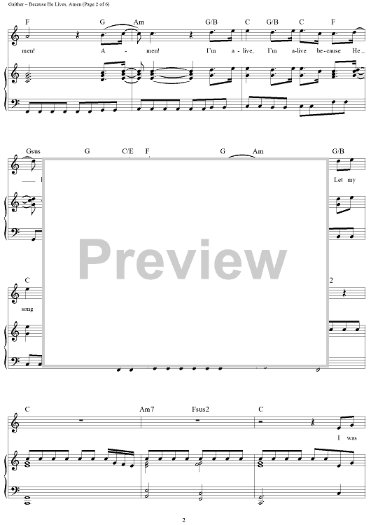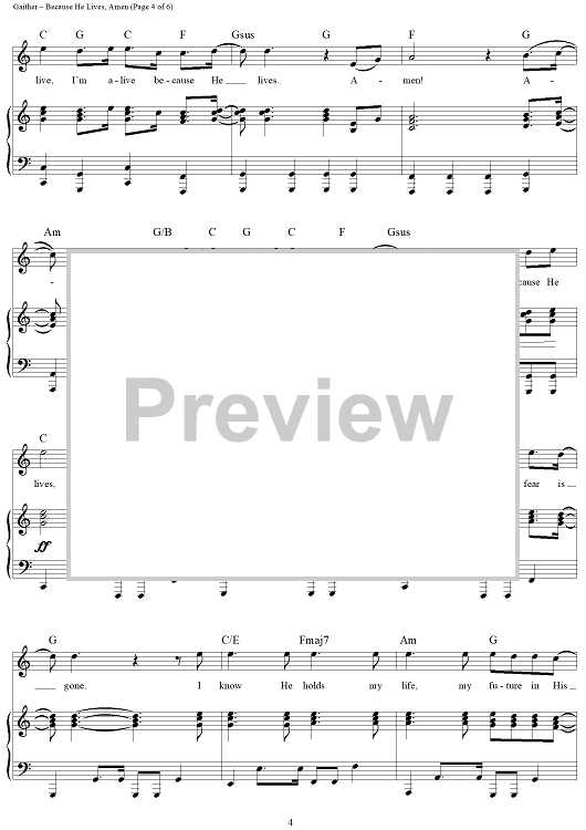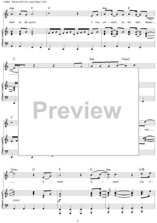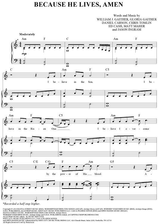 Digital Sheet Music for Because He Lives, Amen by Chris Tomlin, Gloria Gaither, Bill Gaither, Matt Maher, Ed Cash, Daniel Carson, Jason Ingram scored for Piano/Vocal/Chords; id:449068