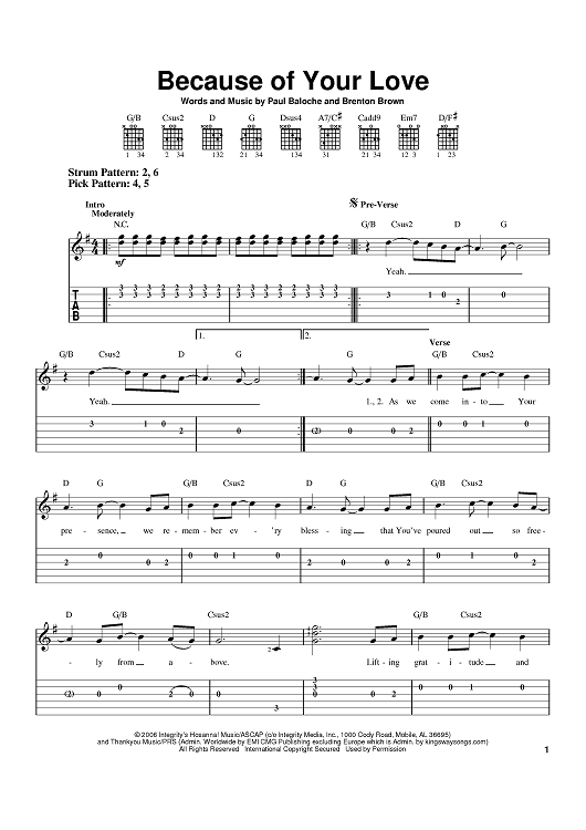 Digital Sheet Music for Because Of Your Love by Paul Baloche, Brenton Brown scored for Easy Guitar Tab; id:395067
