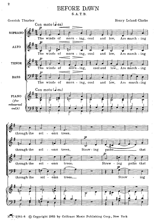 "Before Dawn - S.A.T.B." Sheet Music by Henry Leland Clarke