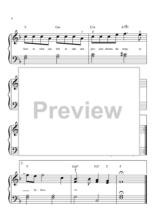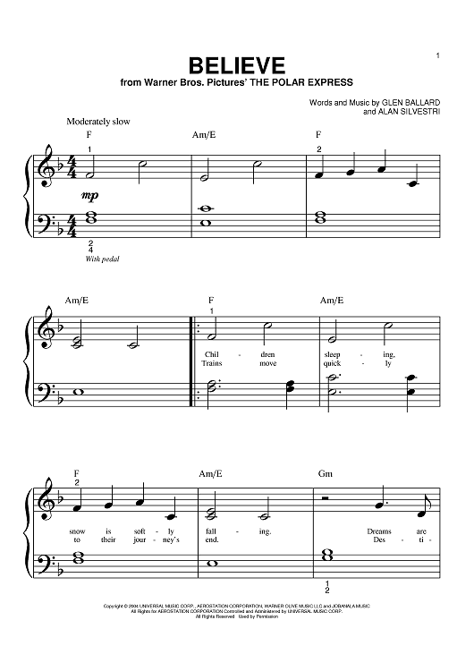 Digital Sheet Music for Believe by Glen Ballard, Alan Silvestri, Josh Groban scored for Big Note Piano; id:384149