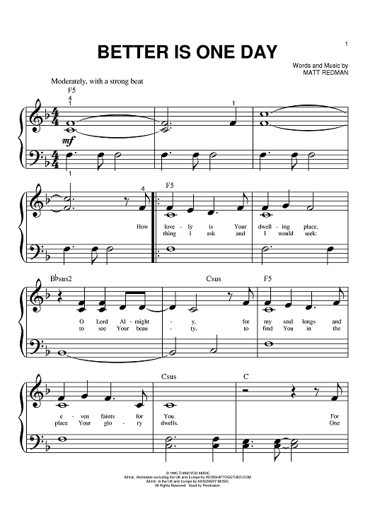 Digital Sheet Music for Better Is One Day by Matt Redman, Passion Band scored for Big Note Piano; id:382167