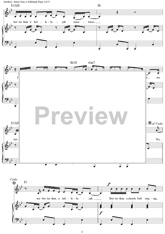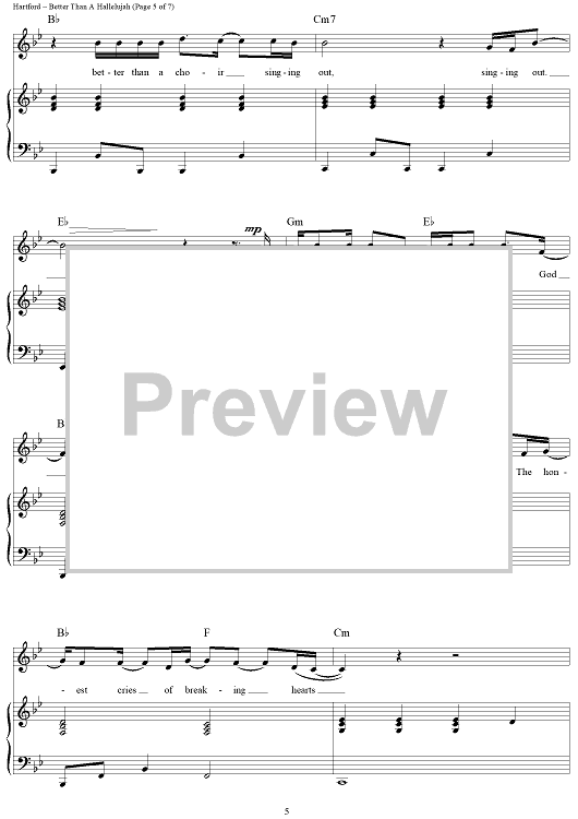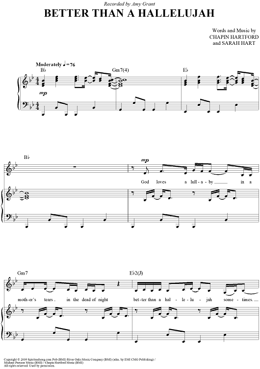 Digital Sheet Music for Better Than a Hallelujah by Chapin Hartford, Amy Grant, Sarah Hart scored for Piano/Vocal/Chords; id:411445