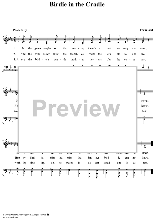 Digital Sheet Music for Birdie in the Cradle by Franz Abt scored for Four-part Mixed Chorus; id:275212