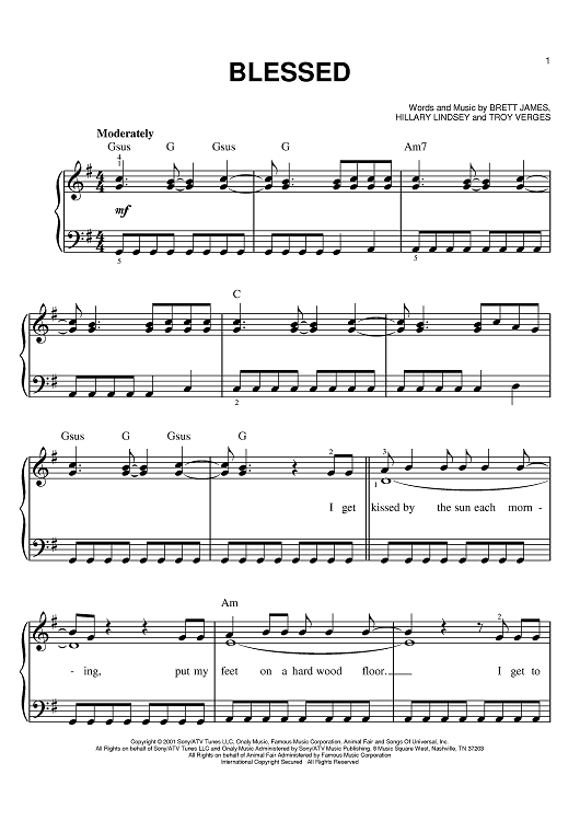Digital Sheet Music for Blessed by Martina McBride, Brett James, Troy Verges, Hillary Lindsey scored for Easy Piano; id:369683