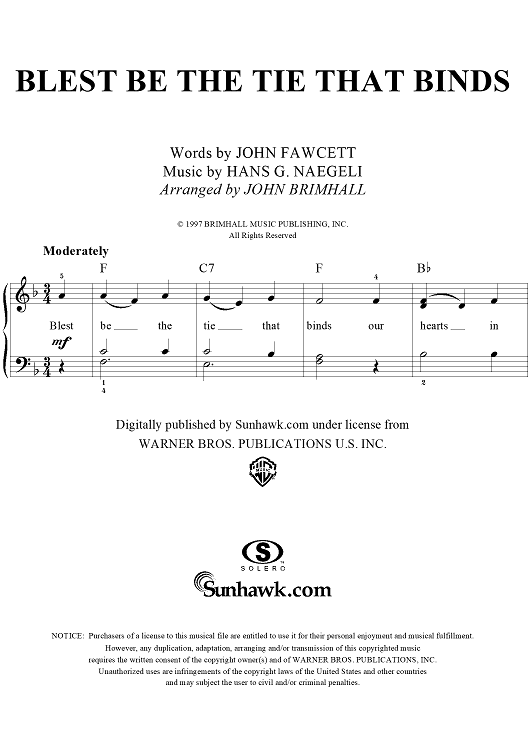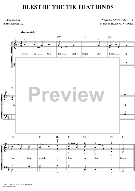 Digital Sheet Music for Blest Be the Tie that Binds by John Fawcett, John Brimhall, Hans Georg Nageli scored for Easy Piano/Vocal; id:253212