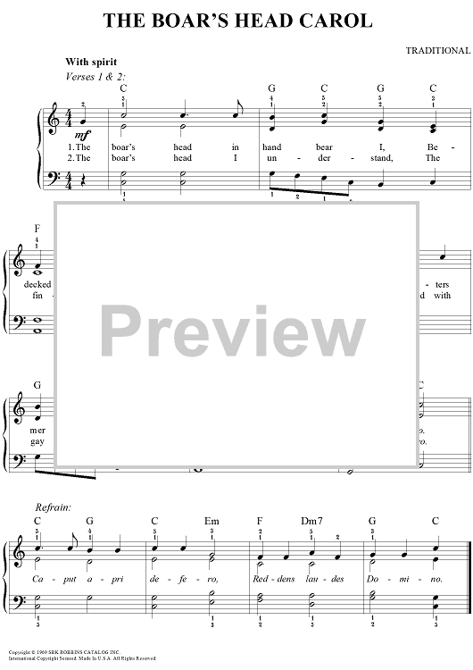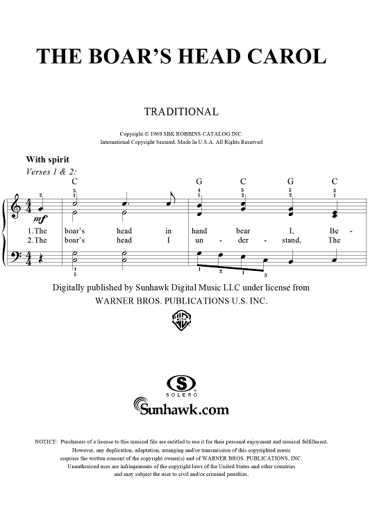 Digital Sheet Music for Boar's Head Carol, The by Traditional scored for Easy Piano/Vocal; id:260582
