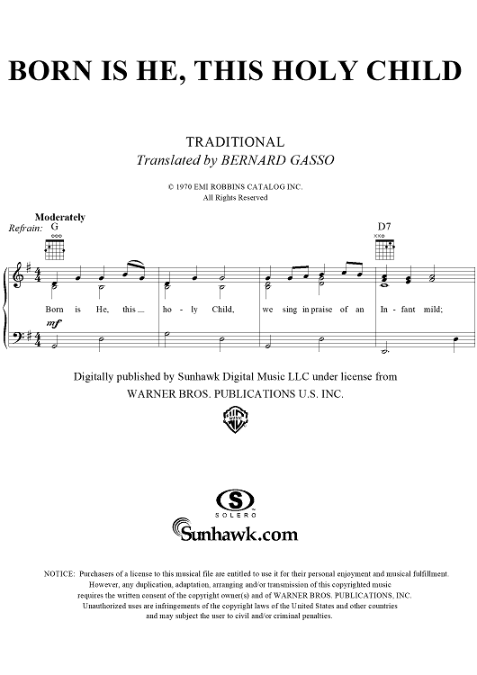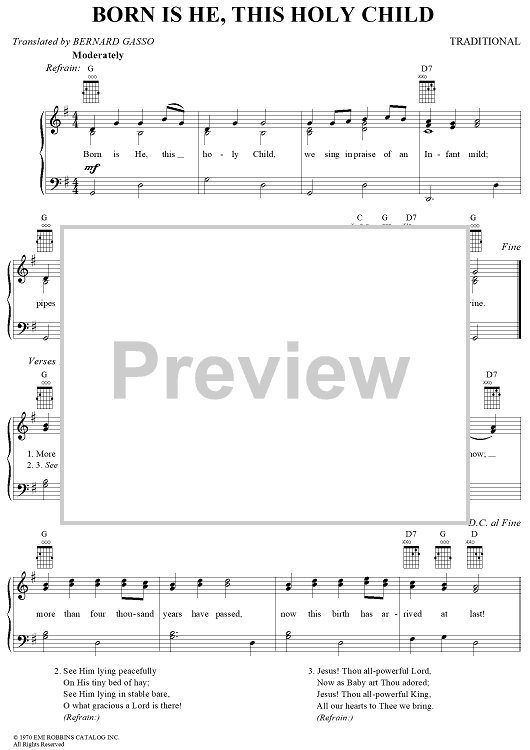 Digital Sheet Music for Born Is He, This Holy Child by Traditional scored for Piano/Vocal/Chords; id:260578