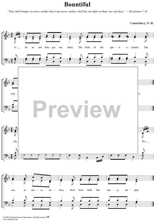 Digital Sheet Music for Bountiful by Unknown Writer scored for Four-part Mixed Chorus; id:277591