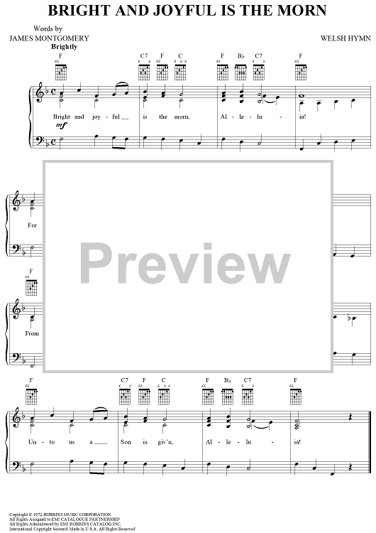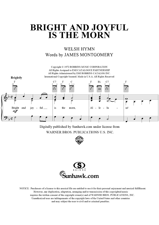 Digital Sheet Music for Bright and Joyful Is the Morn by James Montgomery, Traditional scored for Piano/Vocal/Chords; id:259026