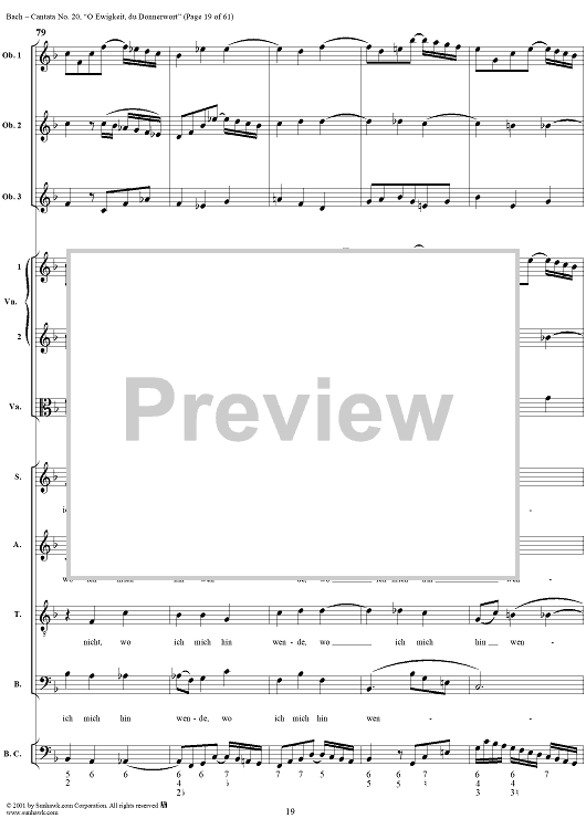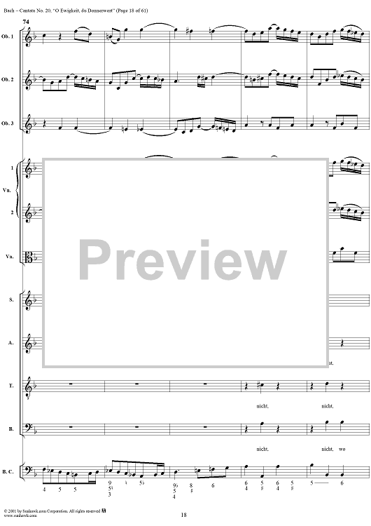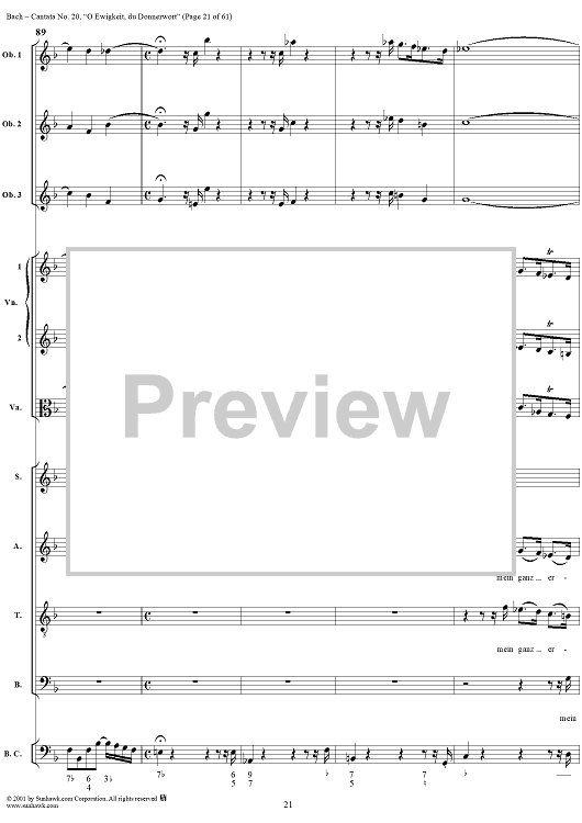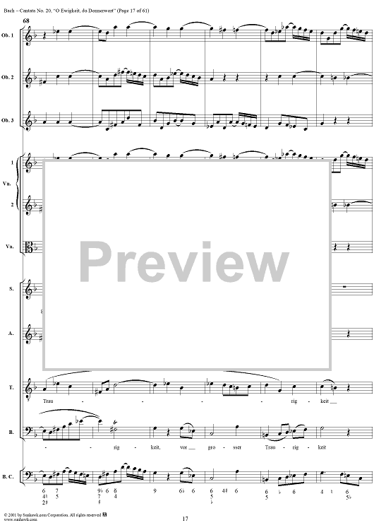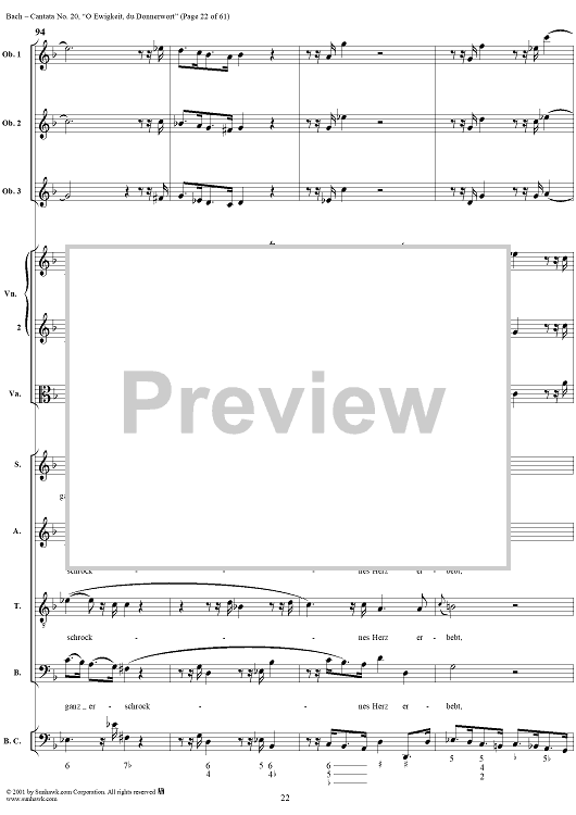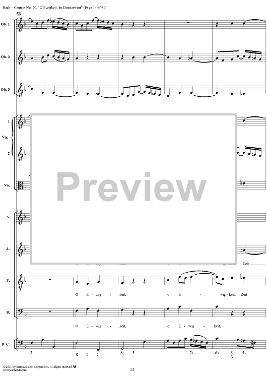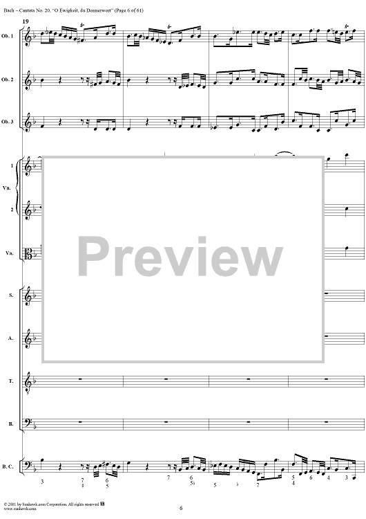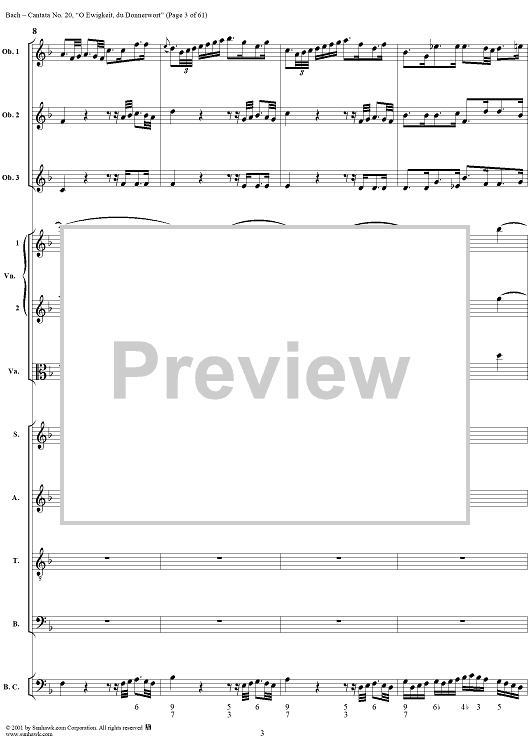 Digital Sheet Music for Cantata No. 20: "O Ewigkeit, du Donnerwort" - Full Score by Johann Sebastian Bach scored for Orchestra; id:259516