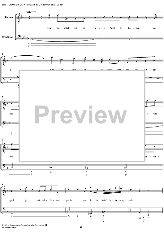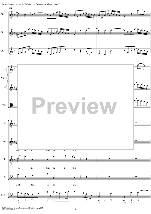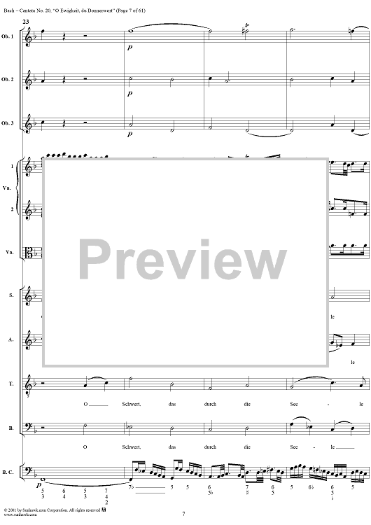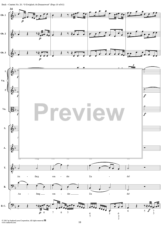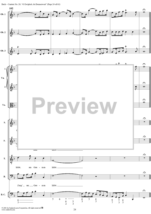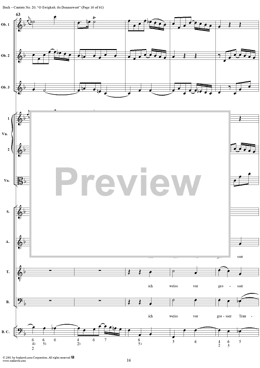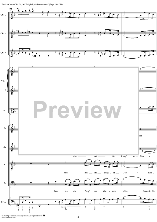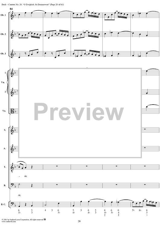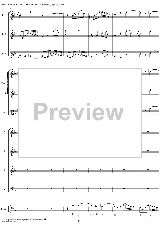 Digital Sheet Music for Cantata No. 20: "O Ewigkeit, du Donnerwort" - Full Score by Johann Sebastian Bach scored for Orchestra; id:259516