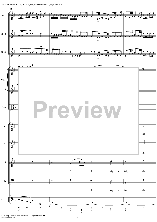 "Cantata No. 20: "O Ewigkeit, du Donnerwort" - Full Score" Sheet Music by Johann Sebastian Bach