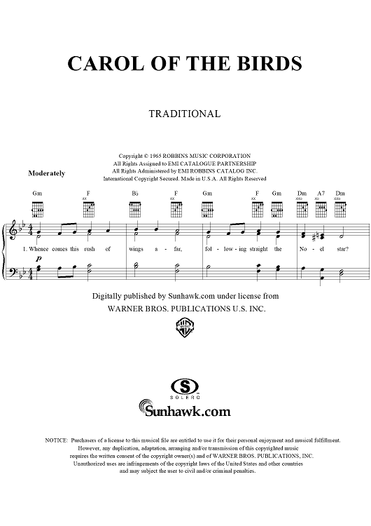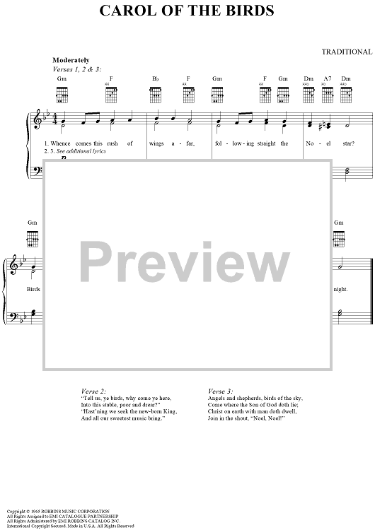 Digital Sheet Music for Carol of the Birds by Traditional scored for Piano/Vocal/Chords; id:260652