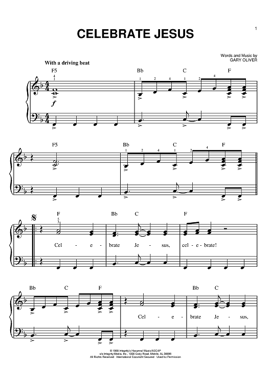 Digital Sheet Music for Celebrate Jesus by Gary Oliver scored for Easy Piano; id:374664