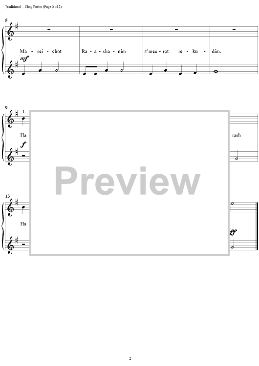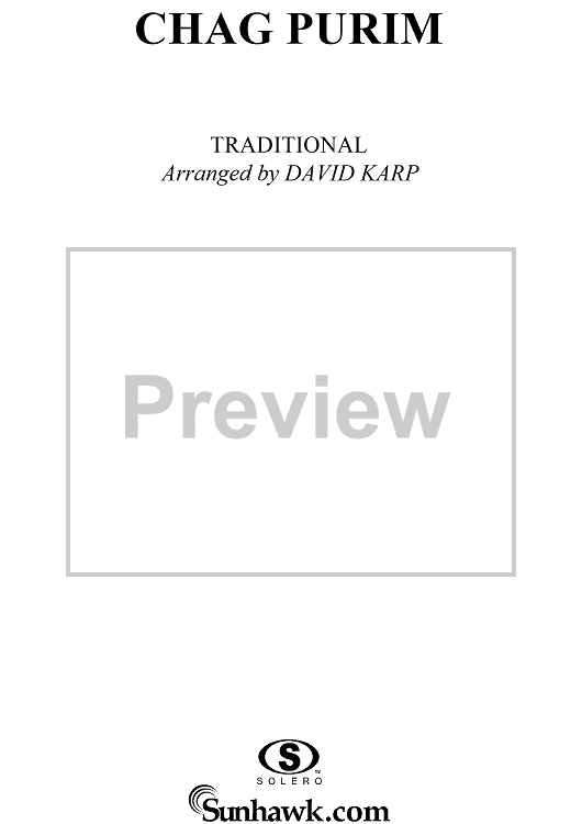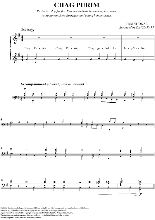 Digital Sheet Music for Chag Purim by David Karp, Traditional scored for Easy Piano/Vocal; id:260670