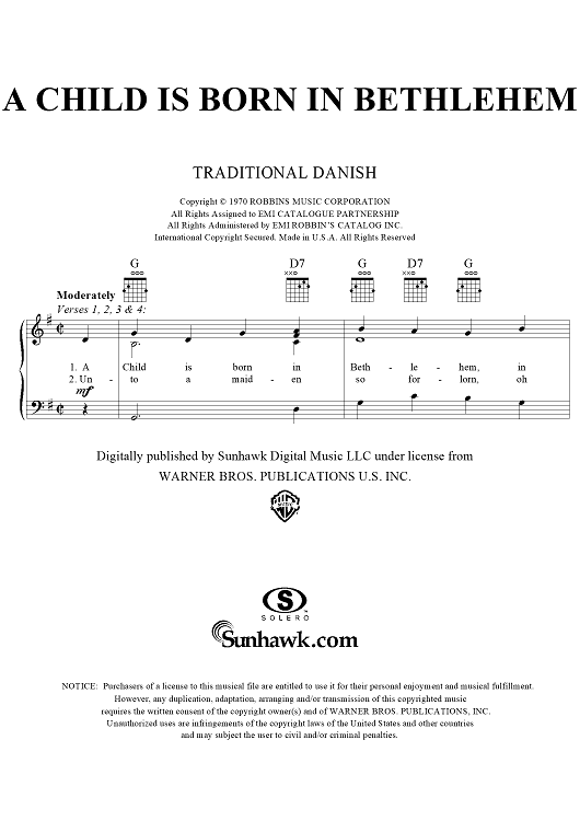 "Child is Born in Bethlehem, A" Sheet Music by Traditional