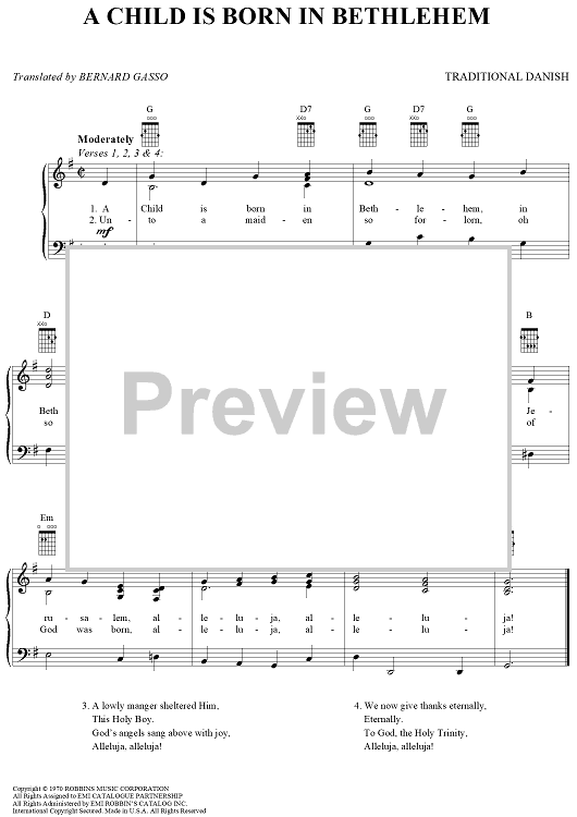 Digital Sheet Music for Child is Born in Bethlehem, A by Traditional scored for Piano/Vocal/Chords; id:260607