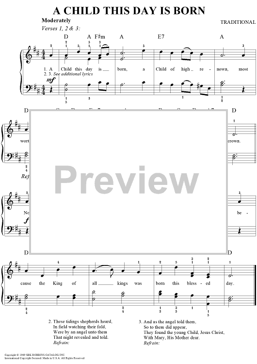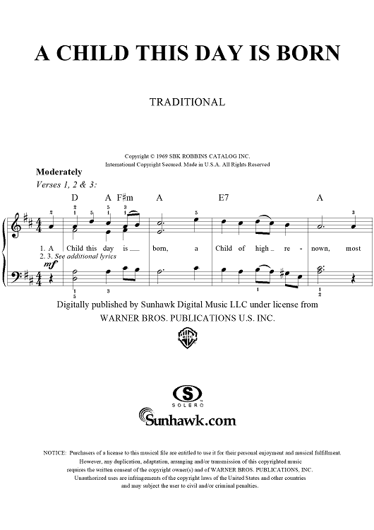 Digital Sheet Music for Child This Day is Born, A by Traditional scored for Easy Piano/Vocal; id:260684