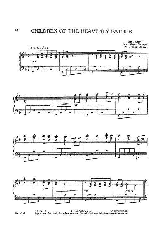 Digital Sheet Music for Children of the Heavenly Father by Swedish Folk Tune, John Innes scored for Piano Solo; id:433621