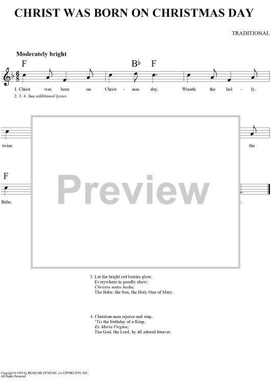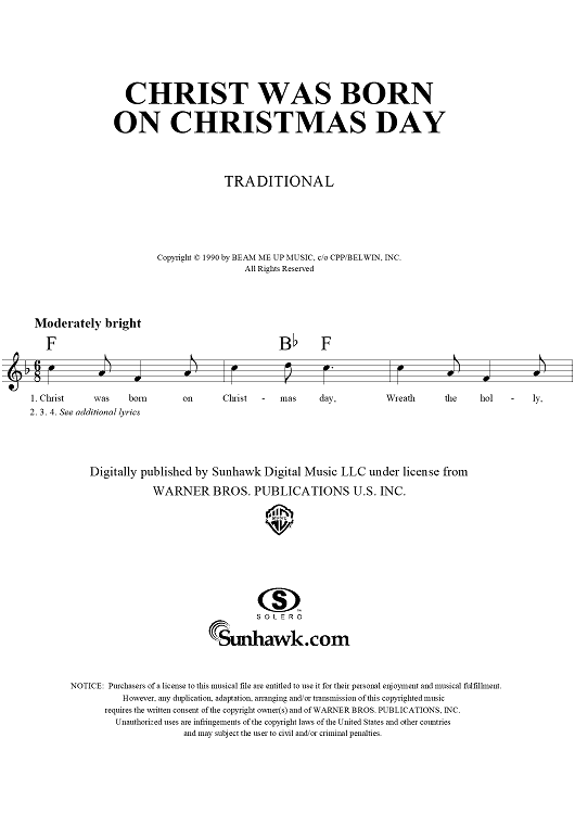 "Christ Was Born On Christmas Day" Sheet Music by Traditional