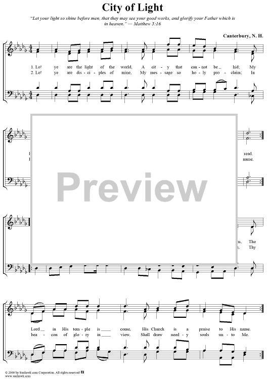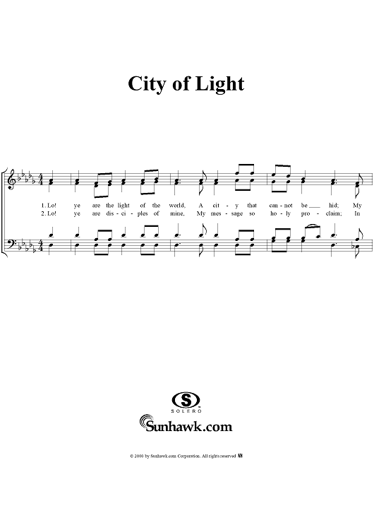 Digital Sheet Music for City of Light by Unknown Writer scored for Four-part Mixed Chorus; id:277612