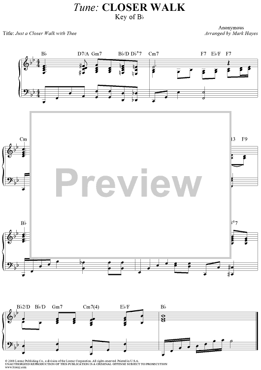 Digital Sheet Music for Closer Walk by , Mark Hayes, Anonymous scored for Piano Solo; id:436640