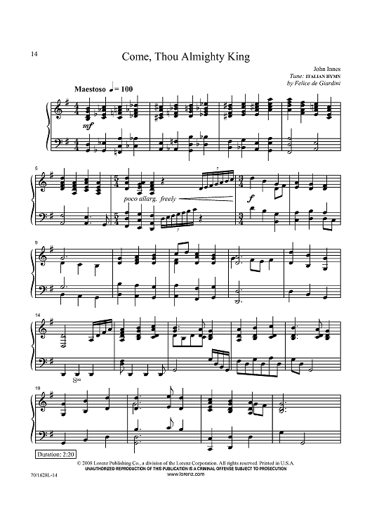 Digital Sheet Music for Come, Thou Almighty King by Felice de Giardini, John Innes scored for Piano Solo; id:434201