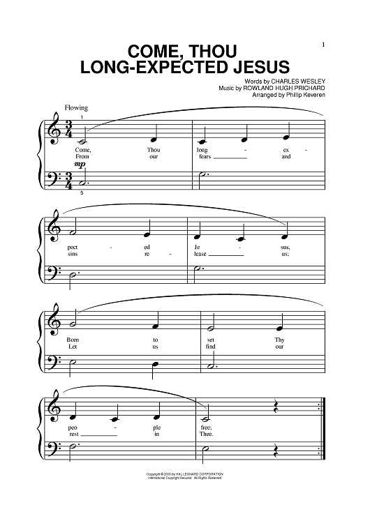 "Come, Thou Long-Expected Jesus" Sheet Music by Charles Wesley