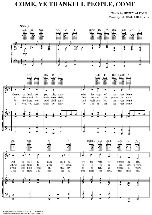 Digital Sheet Music for Come, Ye Thankful People, Come by George J. Elvey, Henry Alford scored for Piano/Vocal/Chords; id:367612
