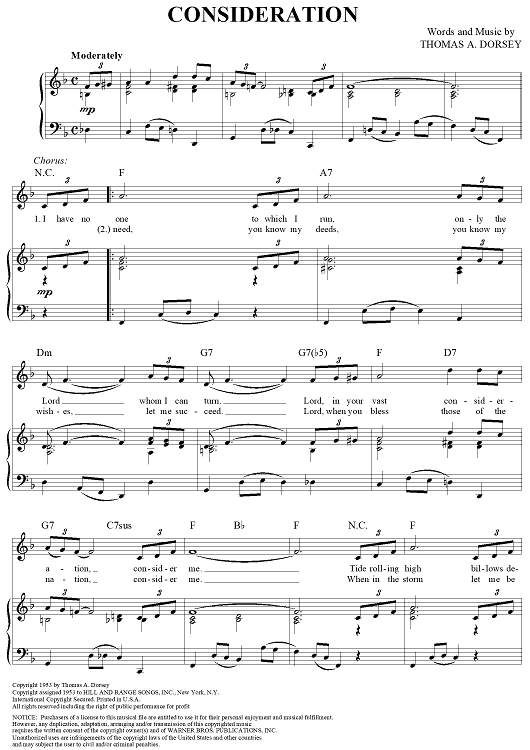 Digital Sheet Music for Consideration by Mahalia Jackson, Thomas A. Dorsey scored for Piano/Vocal/Chords; id:356044