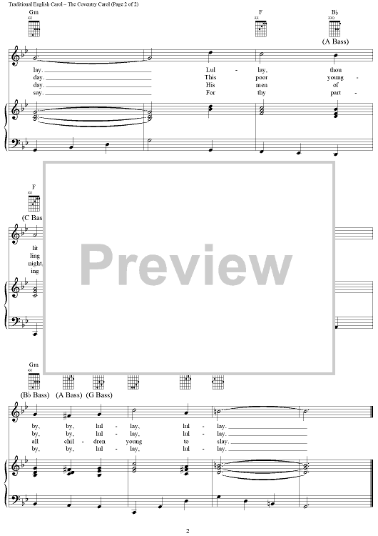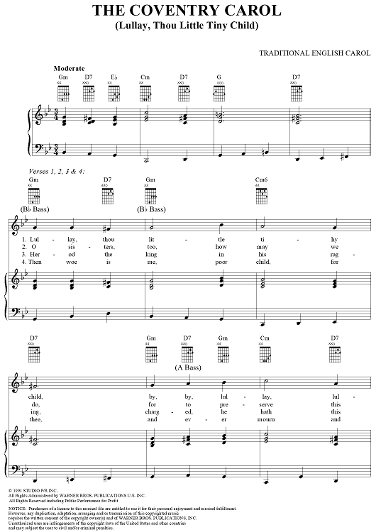 Digital Sheet Music for Coventry Carol, The (Lullay, Thou Little Tiny Child) by Traditional scored for Piano/Vocal/Chords; id:261386