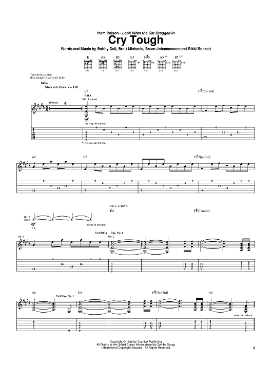 Digital Sheet Music for Cry Tough by Poison, Bobby Dall, Rikki Rockett, C. C. DeVille, Brett Michaels scored for Guitar Tab; id:394064