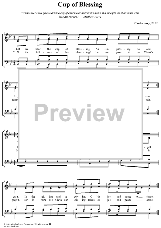 Digital Sheet Music for Cup of Blessing by Unknown Writer scored for Four-part Mixed Chorus; id:277351