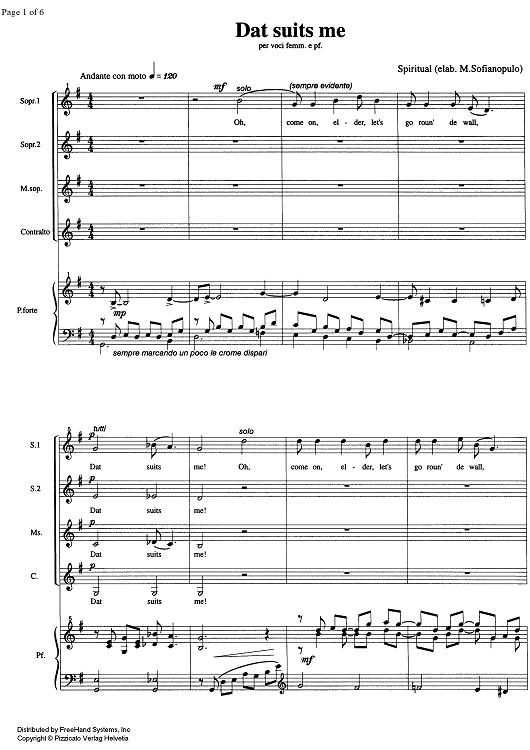 Digital Sheet Music for Dat Suits Me by , Marco Sofianopulo, Traditional scored for Female Chorus/Piano; id:329373