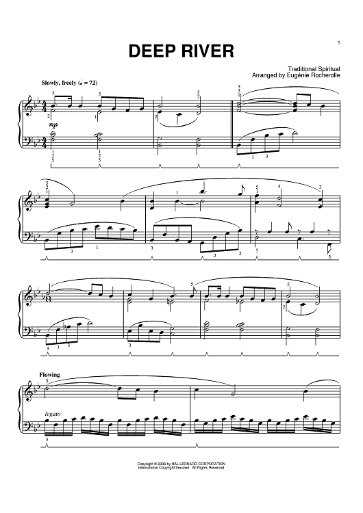 Digital Sheet Music for Deep River by Traditional Spiritual, Eugénie R. Rocherolle scored for Piano; id:394482